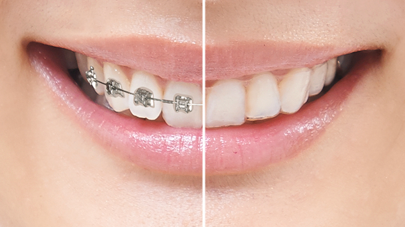 この写真は左がワイヤー矯正、右がマウスピース矯正です。
